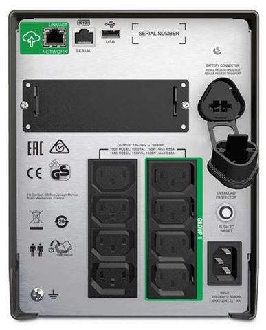 SMT1000IC, Izlazna snaga 700 W, Tehnologija Line interactive AVR, Pure sinewave, Izlazni napon 230 V, Ulazni napon 230 V, Vrijeme punjenja 3 h, Vrijeme rada (50% load) 19 min, Vrijeme rada (100% load) 5,8 min,