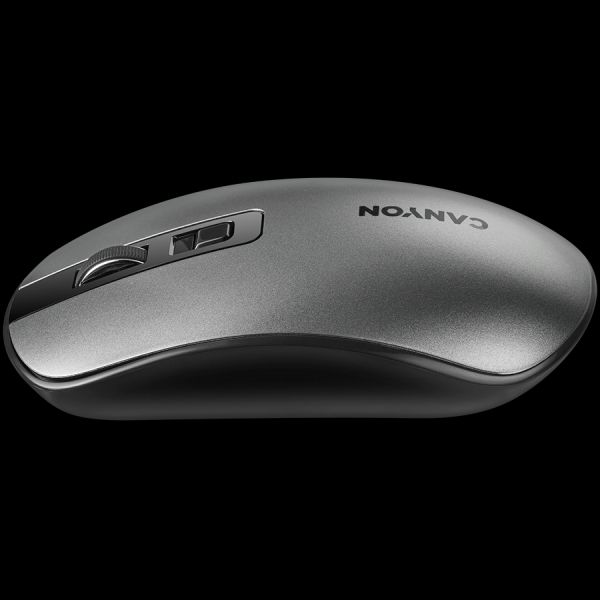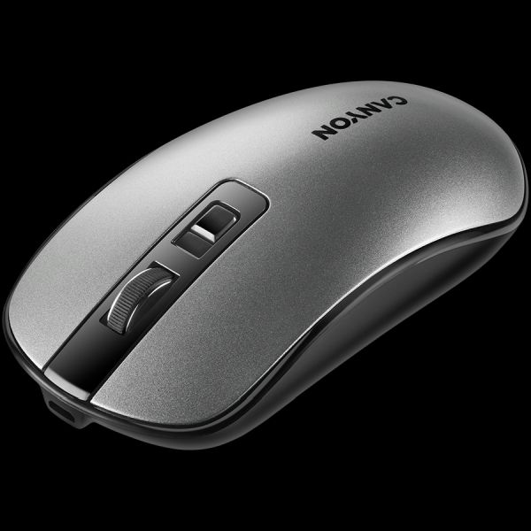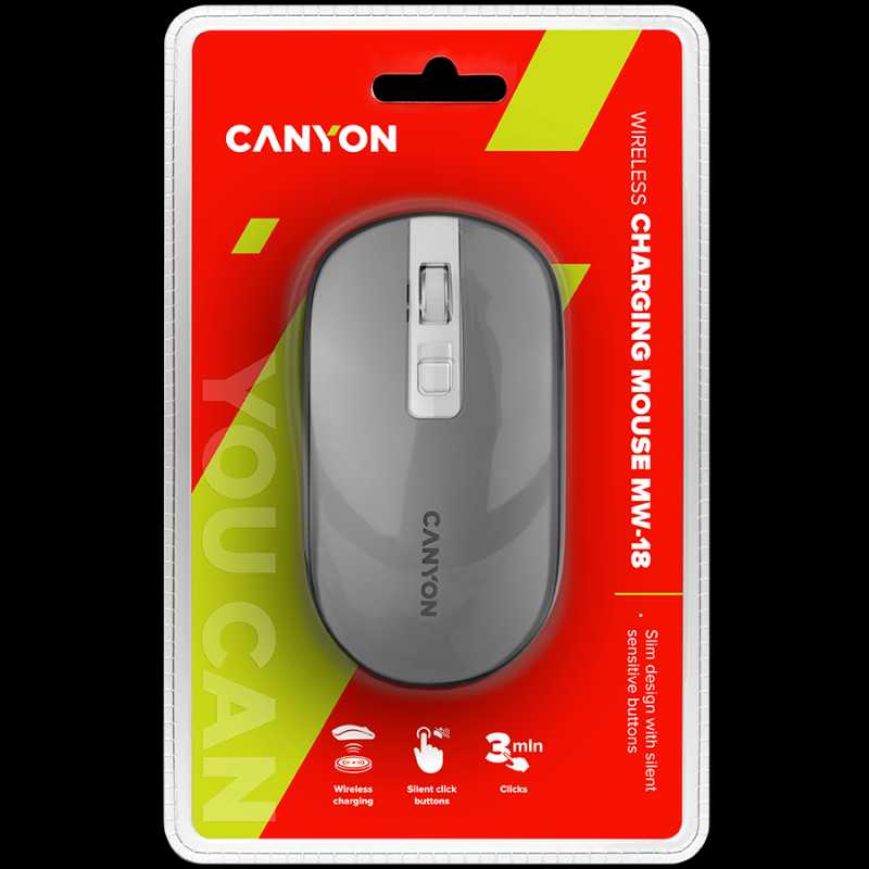 CANYON MW-18, 2.4GHz Wireless Rechargeable Mouse with Pixart sensor, 4keys, Silent switch for right/left keys,DPI: 800/1200/1600, Max. usage 50 hours for one time full charged, 300mAh Li-poly battery, Dark grey, cable length 0.6m, 116.4*63.3*32.3mm, 0.075kg