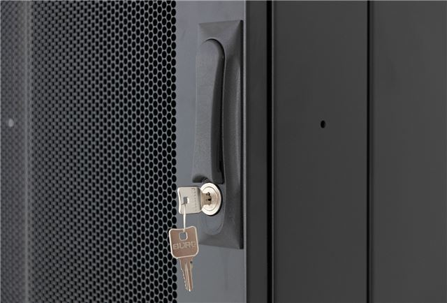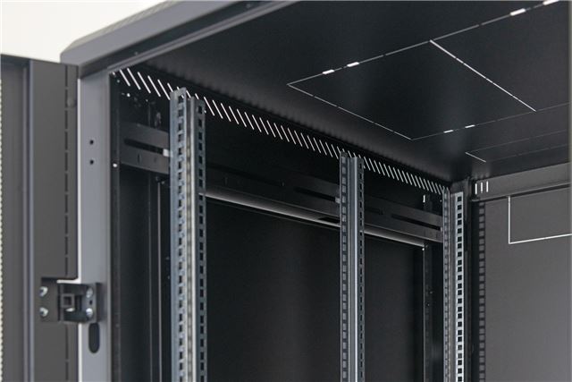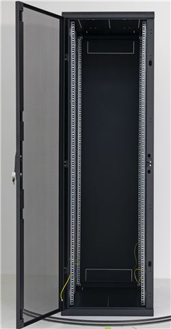RMA-37-L61-BAX-N1, Tip samostojeći, Visina 37U, Širina 600 mm, Dubina1000 mm, Vrata perforirana 80%, Nosivost ormara 800 kg, Bočne stranice da, Vertikalni nosači - 3 para. Zaključavanje vrata, bočnih i zadnje stranice. Crne boje.