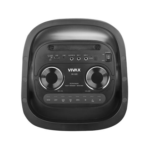 Bluetooth karaoke zvučnik, USB player; MP3; PLL FM s memorijom FMpostaja; 1x bežični mikrofon s baterijama + 1x daljinski upravljač sbaterijama, RCA LINE ulaz 3,5 mm, USB+TF kartica; 80 W RMS audio izlaz(2x 8" bas zvučnik + 1x 2" visokotonac), punjiva baterija od 7000 mAh;dubok i snažan bas zvuk, punjenje baterije, do 7 sati reprodukcije nabaterijskom napajanju (srednja glasnoća); promjenjivo LED svjetlo; 2xulaz za mikrofon + ulaz za gitaru; TWS funkcija (uparivanje dvazvučnika); funkcija karaoke