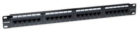 •Solid and reliable terminations for copper cabling featuring a minimum of 3 mm 50 micro-inch gold-plated jack contacts •Compatible with both 110 and Krone punch-down tools •Supports 22 to 26 AWG stranded and solid wire •For use with unshielded twisted pair (UTP) Cat6 network cable •Ideal for Ethernet, Fast Ethernet and Gigabit Ethernet network applications •Connects 24 RJ-45 ports to a network •Occupies 1U rack height •Meets 19" rackmount standards Standards: •IEEE 802.3 (10Base-T Ethernet) •IEEE 802.3u (100Base-TX Fast Ethernet) •IEEE 802.3ab (1000Base-T Gigabit Ethernet) Certifications •UL listed •RoHS compliant Environmental: •Dimensions: 482 mm (W) x 43 mm (H) x 48 mm (D) (19 x 1.7 x 1.9 in.) •Horizontal distance between left and right mounting holes: 465 mm (18.3 in.) •Vertical distance between top and bottom mounting holes: 31.8 mm (1.25 in.) •Weight: 0.76 kg (1.67 lbs.) •Operating temperature: -40 – 80°C (-40 – 176°F) Package Contents •Cat6 Patch Panel •4 mounting screws •Quick start guide