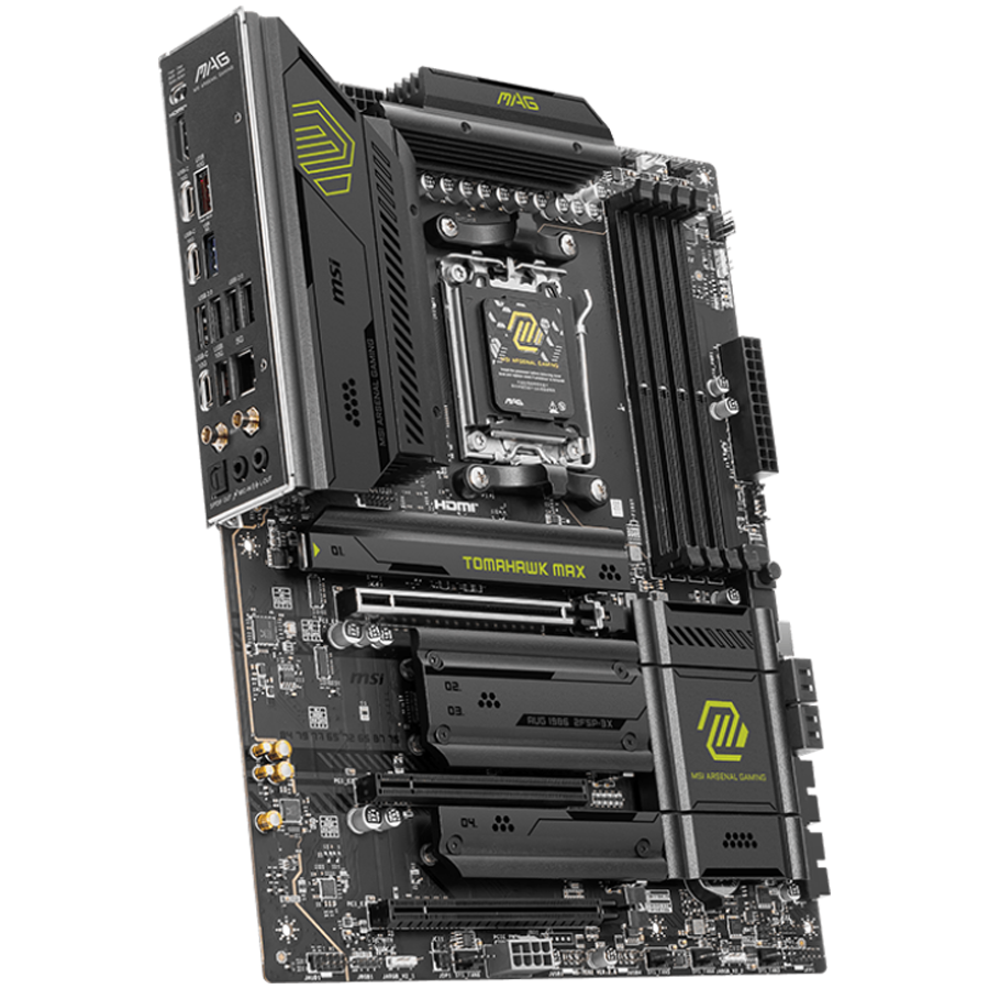 MSI MAG B850 TOMAHAWK MAX WIFI, ATX, Socket AM5, 4x DDR5 Dual Channel DDR5 up to 8400(OC)MHz, 3x PCIe 3.0 x16 slot, 4x M.2 slot, 4x USB 2.0, 1x USB 5Gbps, 2x USB 10Gbps, 3x USB 10Gbps Type-C, HDMI, 7.1 HD Audio, 5G LAN, WiFI 7, BT, 3Y